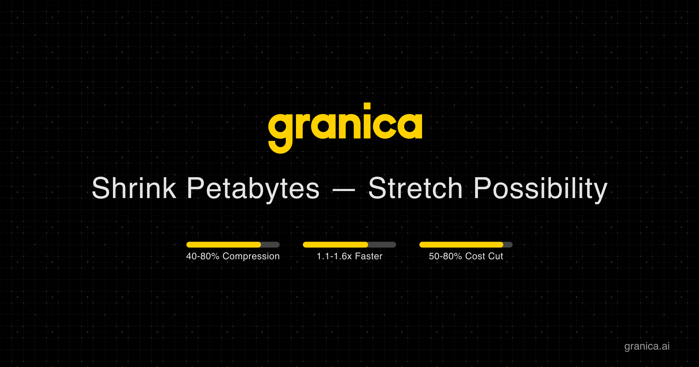 For three decades data has behaved like unspent energy: vast, noisy, stubbornly expensive to harness. Analytics and ML engines of today tackle this with brute force, shuffling terabytes through extract, transform, and load pipelines and scanning them in the hope of insight. Granica converts that entropy into intelligence. We weave a reasoning fabric into storage itself so curiosity is never throttled by compute and every table speaks back in real time. We are redefining ETL with E∑L: Extract, Signify, Load. During Signify the system learns while it stores. It compresses exabytes yet retains distributions, keys, and temporal drift, then reasons over a high-dimensional latent space. An analyst can spot a supplier defect before the quarter closes without writing a line of SQL, because the answer is inferred from learned structure rather than mined by a late-night scan. Most replies return without touching cold blocks at all. Granica plucks precise subsets, assembles correlations, or generates counterfactual rows in place, and it falls back to deterministic storage only when confidence dips. Transformation becomes cognition, and warehouses sink into quiet archives instead of standing between a question and its answer. Our first product, Crunch, delivers this leap at the foundation. Drop raw data in and watch storage/compute costs collapse while query latency shrinks from minutes to moments. Analysts can now converse with their tables, auditors follow cryptographic traces to ground truth, and CFOs watch understanding rather than input-output dominate the bill. Compute is no longer paid by the byte but by the residual uncertainty of a question. When understanding outruns batch jobs, the legacy data engines fade and curiosity rises. Imagination becomes the only limit on what data can do. Granica opens that door today.