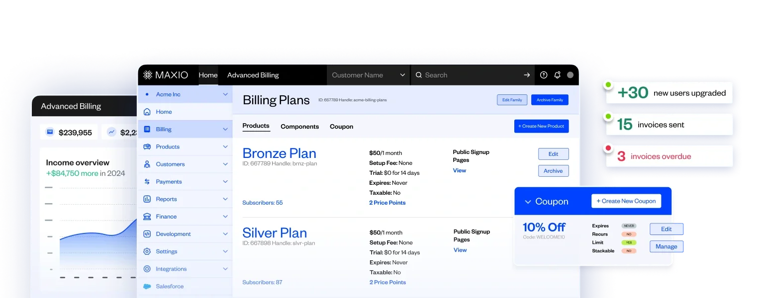 The 2026 B2B Growth Report by Maxio is here. Maxio helps SaaS businesses uncover the critical financial insights they need to run an efficient SaaS business today while preparing for whatever comes tomorrow. Despite the evolution FinTech has seen over recent years, too many growing B2B SaaS companies still rely on spreadsheets and disconnected systems to manage their billing and stay compliant. They simply can’t handle their increasingly complex financial operations without sacrificing the agility they need to execute their go-to-market strategy. Seeing this need, seasoned investment firm Battery Ventures made a joint investment in two industry-leading SaaS billing and finance solutions. Their goal? Combine the best technology already on the market together to create a unified financial operations solution for B2B SaaS companies. Chargify was the leader in billing and subscription management for B2B SaaS. Specializing in complex usage and multi-attribute billing, payment collections, and business analytics, Chargify empowered businesses with the tools they need for sustainable growth. SaaSOptics specialized in automating the financial operations of B2B SaaS companies by streamlining the order-to-revenue process. Through automated revenue recognition, comprehensive A/R management, and detailed financial metrics, SaaSOptics provided companies with the tools they need to maximize revenue. Maxio brings these core functionalities together under one roof. No matter how complex a business’s billing requirements are, Maxio automates all financial operations—from rating and invoicing to reporting and analysis—all in a single, unified system. Our mission is to equip B2B SaaS businesses with the tools they need to achieve flexible, sustainable growth in an ever-changing market. Whether your business is product-led or sales-led, a $1M ARR company or $100M+, Maxio helps you unlock your next stage of growth. The revenue recognition is unparalleled in other systems. It has cut our month-end close down from 15 days to 5 days. Great platform and support! A value adding billing and revenue tool. Streamlined billing and dunning, and better revenue tracking enables more detailed and thorough analysis. The Best Tool of Its Kind for SaaS Businesses. The overall ease of use and database/reporting clarity is phenomenal. It also improved our collections metrics substantially. Battery Ventures, a global, technology-focused investment firm led a combined growth-equity investment of more than $150 million in Maxio (previously Chargify and SaasOptics). Battery partners with exceptional founders and management teams to develop category-defining businesses in markets including software and services, enterprise infrastructure, online marketplaces, healthcare IT, and industrial technology. AI, Financial Operations, FinOps Tech Stack “Maxio and Abacum partner to connect billing automation with AI-native financial planning for faster, more accurate forecasting.” “Ana